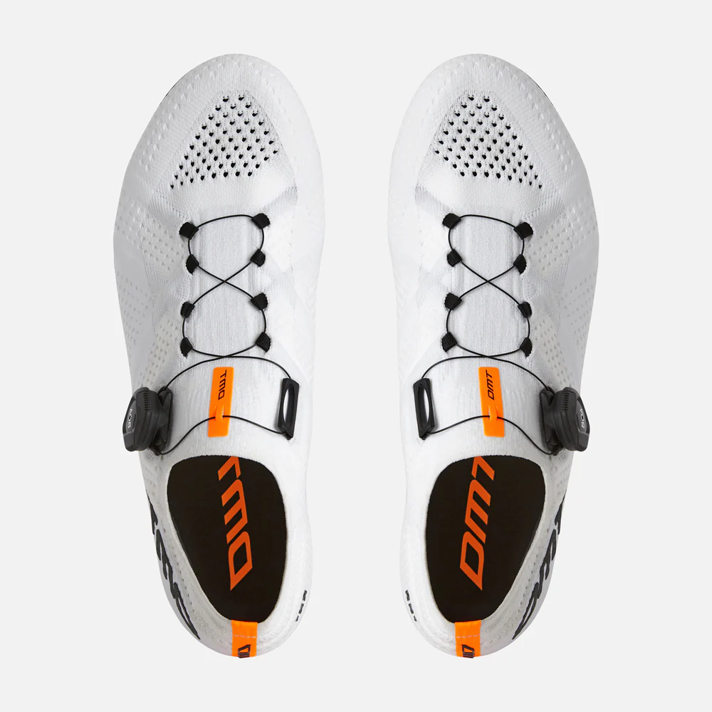 Lahka, hitra, izjemno udobna. KR0 predstavlja vrhunec izboljšanja zmogljivosti na vseh najboljših lastnostih DMT pletene obutve. V sodelovanju z našo najsodobnejšo tehnologijo pletenja smo ustvarili izjemno lahek čevelj, ki ponuja odličen prenos energije zahvaljujoč anatomskemu karbonskemu SL podplatu nove generacije, dvojnemu zapiralu Boa in integrirani zgornji konstrukciji, ki se popolnoma prilagaja nogi vsakega kolesarja. Razvit in preizkušen s kolesarji World Tour, vključno z Elio Viviani.